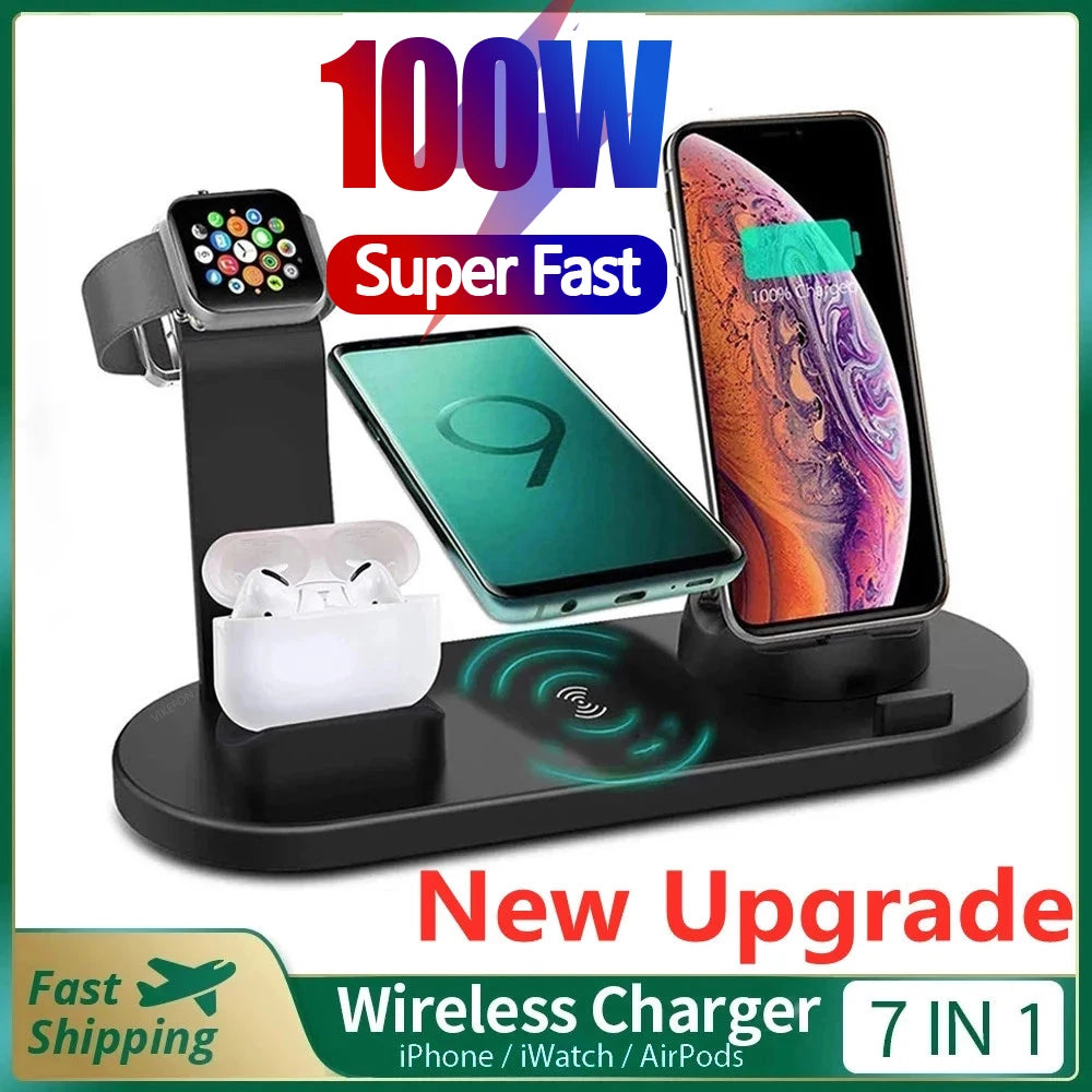 5 in 1 Wireless Charger Stand Dock for Apple Watch 8 7 6 5 4 3 iPhone 13 12 11 Xs 8 Airpods Pro Wireless Fast Charging Station